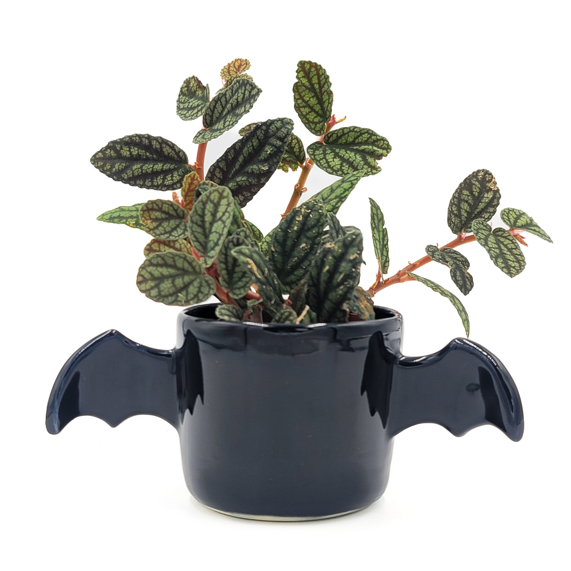 Handmade, wheel-thrown planter. Formed with a white porcelain/stoneware combination clay body and glazed with a beautiful glossy black.